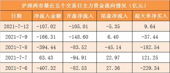 今日沪深两市主力资金开盘净流出105.01亿元,尾盘净流出5.35亿元,两市全天资金净流出107.02亿元。