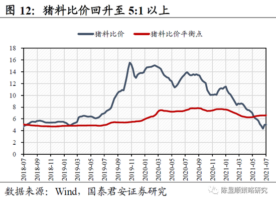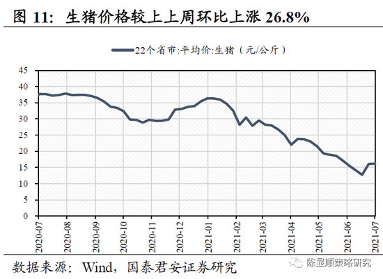 农产品:第一批收储工作完毕,生猪价格触底反弹。截止7月9日,22省市生猪平均价报收16.14元,环比上上周上涨26.8%,猪料比回升至5:1以上,主因收储确认市场炒作情绪浓厚,以及部分地区农户压栏惜售导致供给边际收紧。7月7日,国家已完成第一批2万吨中央储备猪肉收储工作,预计9日将开启第二批收储,规模1.3万吨,养殖端恐慌情绪有望得到缓解。但考虑到当前终端需求正处于淡季,且猪肉供给量目前已经处于阶段高位,行业供需失衡问题仍存,短期猪价上涨缺乏动力。