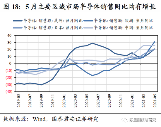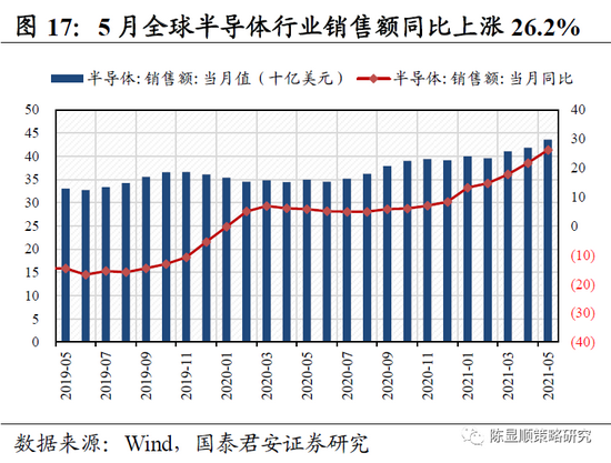 半导体:行业持续高景气,5月全球半导体销售额创单月历史新高。截止7月13日,费城半导体指数、A股半导体指数、台湾电子加权指数半月涨-1.33%、-1.09%、2.15%。美国半导体行业协会(SIA)公布数据显示,5月全球半导体销售额达436亿美元,同比增长26.2%,环比增长4.1%,创历史单月新高,全球各主要区域市场半导体销售同比均有所增长。台积电6月营收达1485亿新台币,同比增长22.8%,环比增长32.1%,中国台湾地区最大半导体设备代理商崇越集团表示,台积电订单几乎满到2024年。考虑到市场需求增长远高于产能增加速度,半导体供需失衡问题短期难解,板块高景气度仍将持续。