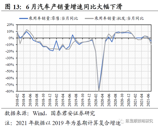 ? 6月乘用车销量仍受产能制约,汽车景气拐点渐行渐近。乘联会汽车销量数据显示,6月乘用车零售/批发销量分别为157.5万辆/153.1万辆,同比下滑5.1%/10.2%、环比下滑3.1%/4.9%。销量下滑的原因仍在于供给端,“缺芯”限制了主机厂产量释放。而乘用车终端需求强劲,体现在乘用车零售销量增速仍高于批发。下半年行业渠道有较强的补库需求,目前整车厂和经销商库存均处在历史低位,6月库存数量仅为同期历史均值的51.5%。后续随着台积电加大汽车芯片供应,产业预期三季度缺芯问题将逐步得到缓解,叠加行业将进入补库周期,汽车景气度有望触底回升。