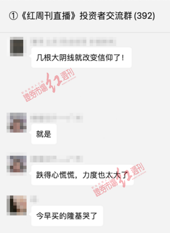 从《红周刊》记者了解情况来看,面对市场的调整,个人投资者情绪更为激动,“割肉”、“心慌”等成为各大投资交流群的高频词汇。