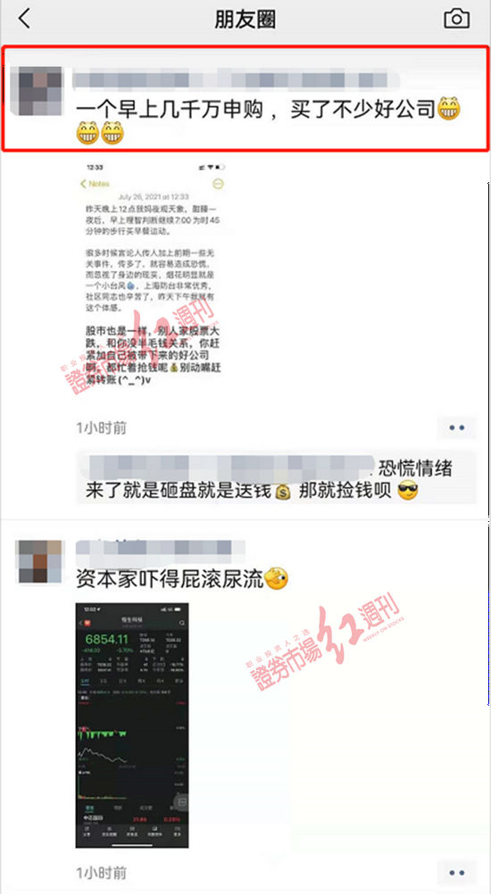 与此同时,《红周刊》记者注意到,多位机构投资者正忙着募集资金“抄底”。其中,一位中小型机构的资产管理人在朋友圈晒出“成绩单”,仅7月26日一上午就募集到了几千万。并且,其留言表示,“恐慌情绪来了就是砸盘、就是送钱,那就捡钱呗。”