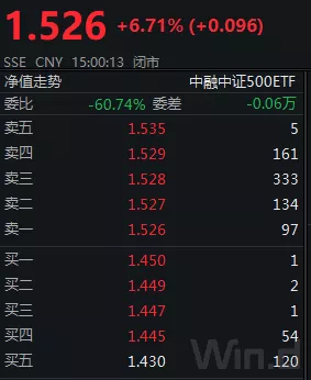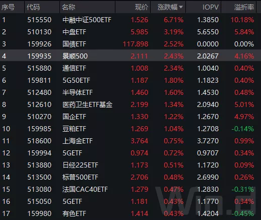 同样追踪中证500的景顺长城500ETF,日内涨幅亦为正,达到2.43%。