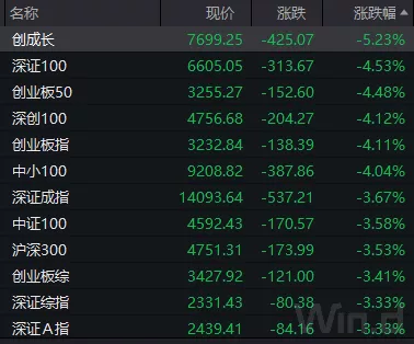 宽基股票指数全线下滑。其中,代表大市值的沪深300指数、代表中小市值的中证500指数,日内跌幅分别为3.53%和2.17%。
