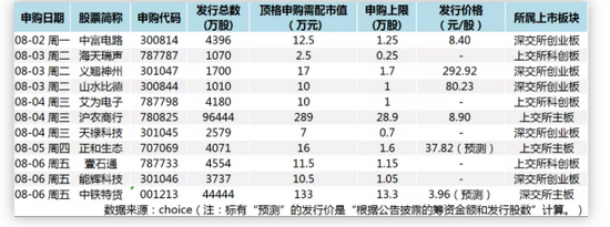 根据新股发行安排,下周(8月2日-8月6日)有11只新股发行。