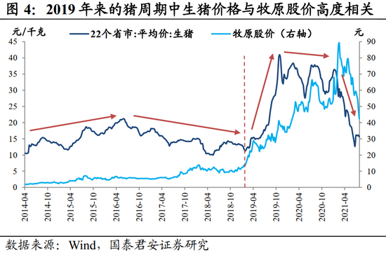 生猪养殖行业是典型的周期性行业。我国猪肉的需求比较稳定,但供给端的波动较大,原因是我国标准化规模饲养程度较低,大量的中小散户容易随着猪价的涨跌进行盲目扩张或恐慌退出。另外,养殖业还容易受到疫情等外界因素的扰动。2019年非洲猪瘟导致生猪出栏急剧下滑,猪肉价格暴涨。