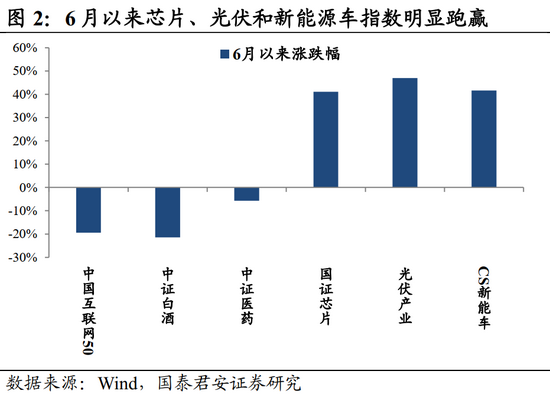 2021年6月以来,新能源车、光伏、芯片股价屡创新高,白酒、医药和互联网等传统躺赢赛道却被按在地板上摩擦。创业板指数首次超过上证指数,创业板的“带头老大”宁德时代成为A股市值第三的公司,仅次于茅台和工商银行。消费基金纷纷调仓布局新能源,撕裂的行情演绎达到极致。