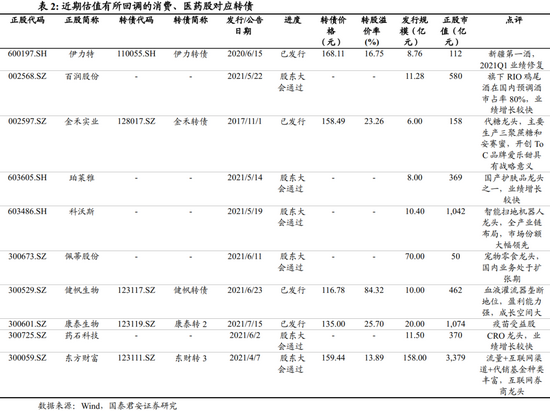 此外,周期性较弱的消费、医药企业经历回调之后估值也逐渐回归性价比,可以考虑布局。建议增持我们此前的转债掘金系列报告中分析过的伊力转债、金禾转债、健帆转债、东财转2,有转债预案的百润股份、珀莱雅、科沃斯、佩蒂股份、药石科技,以及疫情反复之下的疫苗受益标的康泰转2。