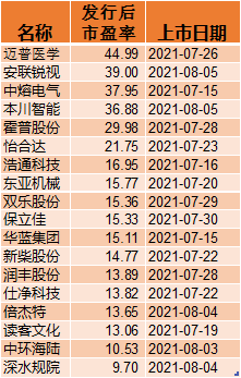 IPO日报初步统计,截至2021年8月6日,创业板最近18家上市公司的平均发行市盈率仅为21.03倍,中位数更低只有15.35倍。而创业板注册制首批上市的18家企业的平均发行市盈率为39.2倍,中位数为37.43倍。
