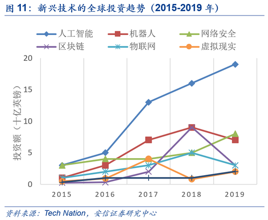 AI融资曲线呈“S”型增长。2013年开始美国AI企业吸引了大量风投资金涌入布局,根据Tech Nation的报告显示,2015-2019年,美国吸引了全球56%的人工智能投资,全球和美国的AI领域投资曲线处于“S”型曲线中的加速增长阶段。彼时美国排名靠前的科技公司大多涉足AI领域,如谷歌AlphaGo、苹果Siri、Facebook个人智能助手 M、微软智能输入法 SwiftKey 产品分别涉足深度学习、语音智能识别、面部识别、AI 预测等多个领域,英伟达则凭借其具有高技术壁垒的AI芯片跻身成为赛道龙头。
