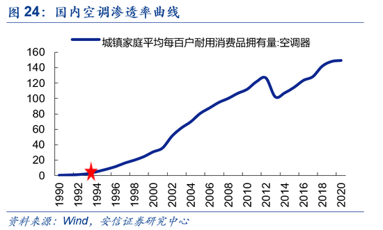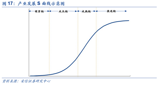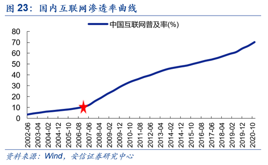 除此之外,彩电、空调、3G、4G、互联网等产业渗透率/占有率的发展路径也呈现出较明显的“S”型特征,其分别在渗透率到达5%、5%、5%、5%及10% 的临界值左右附近迎来快速成长期。