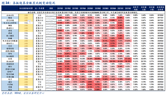 此外,若从资金面的角度出发,当前公募基金对电新板块的配置比例也尚未达到极限位置。即使景气和股价趋势持续占优,某个单一行业也有其抱团极限,从历史上看,这一配置极限通常在20~22%左右。例如2020年Q2的医药(22.05%)和Q4的食品饮料(20.70%)。当前电气设备与新能源的机构配置比例仅为11.67%,我们预计即使加上有色、化工和机械行业中有关新能源的部分机构的配置比例也和20%的配置机械有一定的距离。