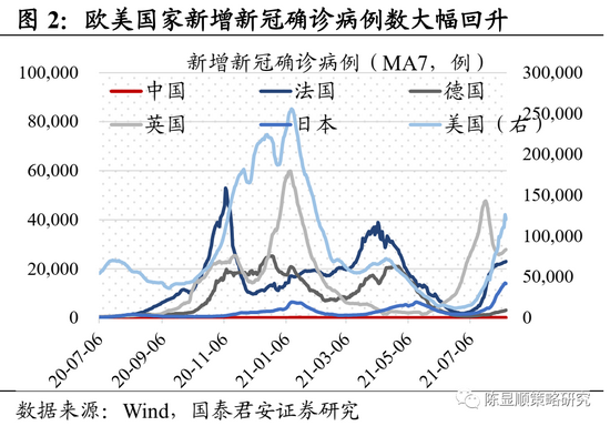 全球确诊新冠人数破2亿,欧美地区疫情进一步恶化。据WHO统计,8月6日全球累计新冠确诊病例数突破2亿人,距离1亿确诊仅过去了6个多月。当前德尔塔变异毒株已席卷全球135个国家和地区,欧美和东南亚成为疫情发酵两大中心。截止8月10日,美国新增确诊人数已连续6日突破10万人次,德、英、法、日新增确诊病例数七日均值分别为3104人、27844人、22982人、13986人,环比半月前大幅上升171%、92%、113%、244%。