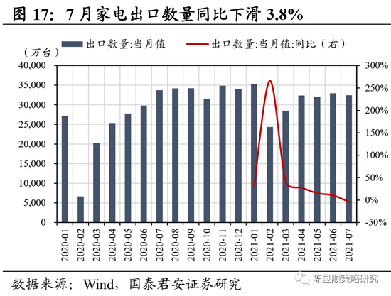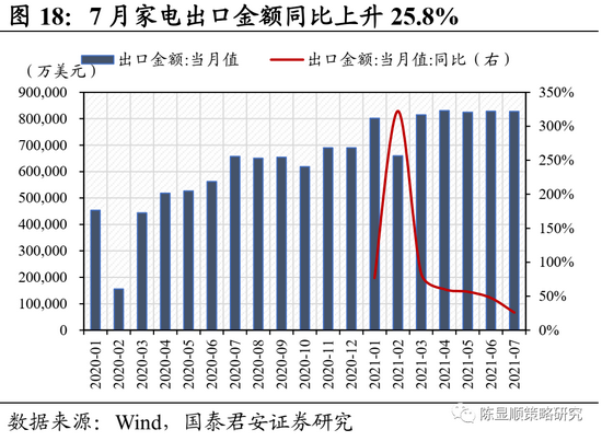 家电:7月家电出口同比增速大幅回落,厨电成为行业结构性亮点。家电出口数量3.2亿台,同比回落3.8%,出口金额82.7亿美元,同比增长25.8%,均较6月大幅回落。家电行业结构性亮点在于厨电,板块龙头中报业绩高增。厨电龙头老板电器21H1年营收同比增23%,盈利同比增18%;火星人中报表现大幅优于行业水平,21H1营收同比增95%,利润同比增150%。厨电高景气一方面来自于“懒人经济”下洗碗机、蒸烤一体机等新兴品类增长以及新生代80-90后的个性化需求所带来的细分品类渗透率的提升,另一方面企业渠道端的持续优化以及竣工潮到来对厨电行业的直接带动,以上优势下半年有望继续维持。