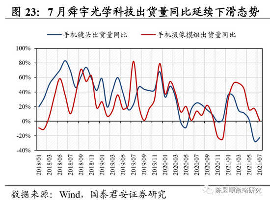 消费电子:iPhone 13步入量产阶段,立讯首次切入整机制造业务。受海外疫情反复及国内手机市场需求放缓的影响,7月各大光学厂商出货数据依旧偏弱,舜宇光学科技手机镜头、手机摄像模组出货量同比分别变动-22.9%/0.8%,大立光营收同比下滑17.5%。下半年iphone13系列、新款MacBook、Apple Watch、AirPods将陆续发布,据日经亚洲报道,目前iPhone 13系列手机已经步入量产阶段,预计到2022年1月共生产9000万至9500万部,较去年同期的iPhone 12明显提升。此次立讯精密从富士康、和硕手中分得组装订单,公司在iPhone 13全系产能中的占比将达到3%。苹果新供应商多从代工老机型起步,立讯首次切入整机制造业务即获得iphone13系列订单,已是弥足进步。此外舜宇光学、蓝思科技、京东方等也已进入苹果产业链。蓝思科技收购可成之后,也将开始为iPhone提供除玻璃盖板/背板之外的金属框架,舜宇光学提供镜头。