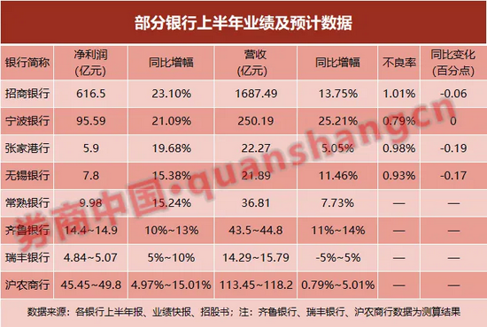 中报大幕拉开:招行、宁波净利增幅创新高