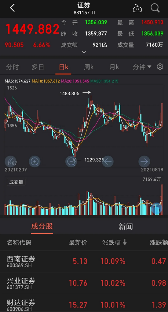 利好政策扶持以及多家上市券商中期业绩预增,进一步“助攻”券商股的上涨。