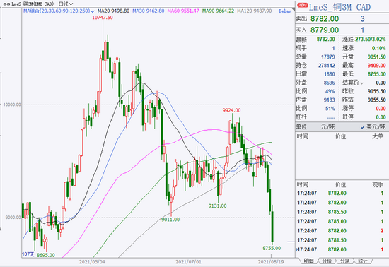 从外盘来看,原油、有色金属跳水。比如伦铜、伦铝等连续杀跌几天了,是否会影响到A股有色金属板块呢?这个事情,大家可以注意一下。