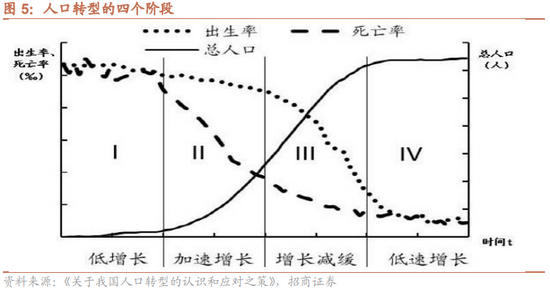 ?第四阶段:死亡率和出生率在低水平上达到均衡,人口红利时期庞大的劳动人口逐渐老龄化,造成社会巨大的养老负担,而少子化使得劳动力不足,使得经济社会面临一定危机。