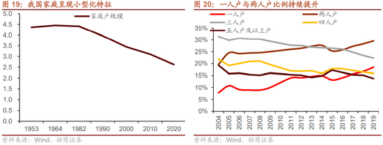 此外,家庭小型化将引发共享性支出的上升以及便捷消费需求的增加。