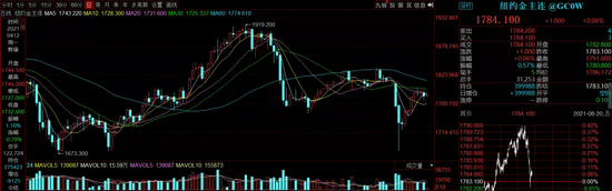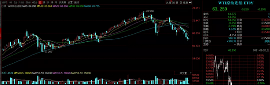 图为:截至北京时间8月20日17:30部分大宗商品价格走势图