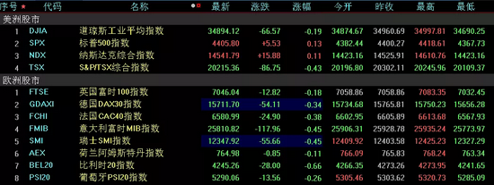 图为:截至北京时间8月20日17:00外围股市主要股指表现