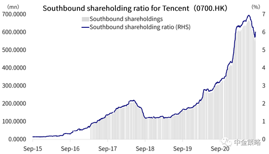 腾讯控股在南向投资者中的持仓比例从6月初的6.96%降至6.01%