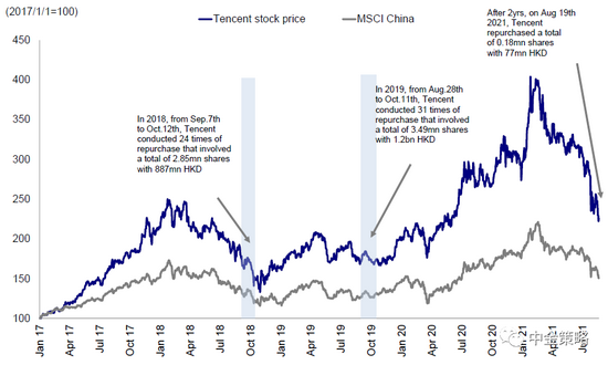 不得不说,对中国增长趋缓、美联储政策退出和监管不确定性的三重担忧再度引发市场剧烈动荡,尤其是市场情绪本就相对脆弱。往前看,各种不确定性叠加影响,市场仍不排除继续盘整甚至面临波动,在没有足够强的外部催化剂逆转当前局面的情况下,市场仍可能在当前轨迹上运行。不过,在近期恐慌性抛售过后,市场可能也在酝酿投资机会,特别是估值已经计入了相当多的悲观情绪。比如腾讯目前市净率已回落至2005年以来最低水平,且近期进行了2019年8月份以来的第一次股票回购。虽然目前就据此判断市场完全企稳见底还为时尚早,但合适催化剂的出现或者政策忧虑的减轻或将推动市场出现明显反弹。
