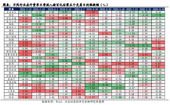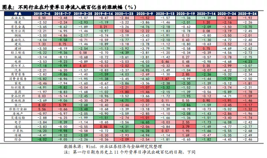 同时,我们梳理了不同行业在外资净流出超百亿的当天和5个交易日后的表现,我们得出如下结论: