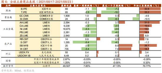 由于美联储议息会议首次详细讨论了缩减QE,上周大宗商品价格多数下跌,原油、工业金属、农产品价格下跌,黄金小幅上涨。美国十年期国债利率下跌1BP,比特币上涨7.85%至49507美元。