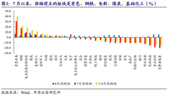 在投资者普遍认为宏观时钟走向滞胀或者衰退的时候,中上游传统资源品却出现了大幅的上涨。7月以来,涨幅最大的板块是有色(40%)、钢铁(22.3%)、电新(18.3%)、煤炭(14%)、基础化工(11.2%)。主要传统周期板块已经创下2016年供给侧行情以来的新高,周期股也不是6月以前的跟涨商品的行情,而是再一次成为了主角。上一次出现这一广泛特征是在2006年前后的周期股行情中,共同点是:当市场定价长期盈利能力时,才会出现周期股比商品更好的表现。但是,我们需要认识到,相比过往需求驱动的行情,这一轮周期股的机遇也和过往不同。