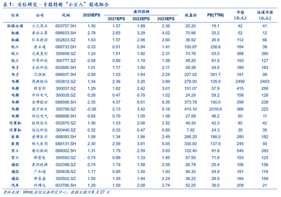 我们汇总整理了安信研究各行业分析师对于专精特新“小巨人”相关公司的推荐,梳理出了安信研究·专精特新“小巨人”精选组合,供投资者参考。