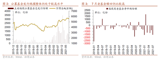 从近期投资者数据来看,公募基金持续赎旧买新,基金发行热度不减难改存量博弈格局。8月新成立偏股类公募基金1277亿元,其中主动偏股公募基金发行规模1144亿元,虽然较前期小幅下降,但仍处近两年的中等偏上水平,其中最大发行份额达到148.7亿元,表明居民买基热情不减,尤其最近一周偏股类基金发行规模翻倍。但是从基金申赎情况来看,7月老基金赎回规模有所扩大。今年以来,市场风格与过去两年明显不同,此前投资收益可观的基金赎回压力犹存。因此,综合基金发行和申赎的情况,公募基金基本仍处于赎旧买新的存量博弈状态。