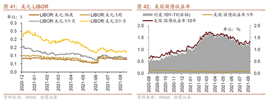 8月23日-8月27日,短、长端美债收益率上行,利差扩大。美国1年期国债收益率上行1.0bp至0.07%,10年期国债收益率上行5.0bp至1.31%,利差扩大4.0bp至1.24%,截止8月27日,美元LIBOR涨跌不一,隔夜LIBOR下降0.13bp,1周LIBOR上升0.01bp,1个月LIBOR上升0.01bp,3个月LIBOR下降0.85bp。