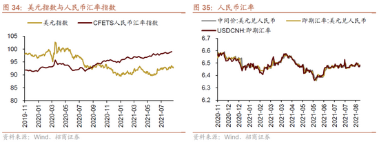 8月23日-8月27日,美元指数回落,人民币相对美元升值。截止8月27日,美元指数收于92.70,较前期(8月22日)下降0.76点,人民币汇率指数较前期下降0.2点收于98.8点,美元兑人民币中间价、即期汇率、离岸汇率均下降,分别为6.49、6.48、6.46,人民币升值。