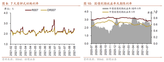 货币市场利率上行,R007与DR007利差扩大;短、长端国债收益率上行,期限利差缩小。截至8月27日,R007为2.42%,较前期上行28.4bp,DR007为2.33%,较前期上行24.4bp,两者利差扩大4.0bp至0.09%。1年期国债到期收益率上升5.5bp至2.32%,10年期国债到期收益率上升1.8bp至2.87%,期限利差缩小3.7bp至0.55%。
