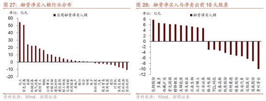 8月23日-8月27日,融资资金净流入219.5亿元。具体来看,本周融资资金买入化工(+54.5亿元)、有色金属(+50.8亿元)、采掘(+24.2亿元)等行业,净卖出食品饮料(-10.7亿元)、农林牧渔(-8.2亿元)、医药生物(-7.0亿元)等行业。个股方面,融资净买入规模较高的为包钢股份(+7.9亿元)、多氟多(+6.7亿元)、西藏矿业(+6.5亿元)等;融资净卖出规模较高的包括贵州茅台(-10.0亿元)、通威股份(-7.2亿元)、迈瑞医疗(-6.3亿元)等。