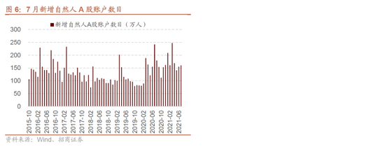另外,开户数据显示散户资金入市热情不减。7月A股新增开户数目较6月小幅增长,从A股新开户的情况来看,7月新增自然人投资者160.55万人,比前一个月多增 5.3万人,新增开户数自5月起持续回升。