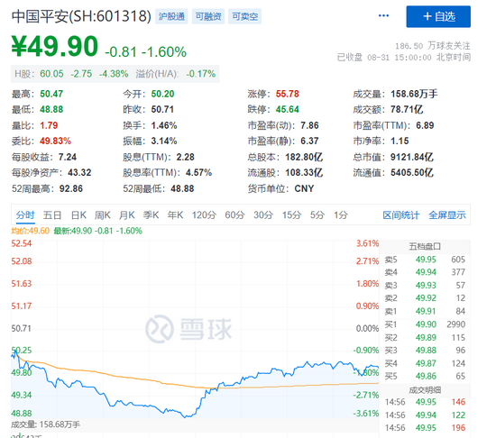 今日中国平安A、H股大跌。中国平安A股一度大跌3.45%,股价跌破50元/股,从珍惜60元的平安到珍惜50元的平安,现在又有投资者表示,请珍惜40元的平安