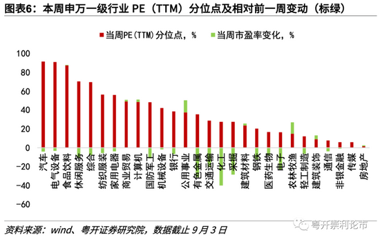 本周行业估值方面,公用事业、农林牧渔、建筑装饰板块估值上浮。中报季多数行业估值下行,从当前PE(TTM)在历史十年的分位数来看,汽车(91.49%)、电气设备(91.04%)、食品饮料(87.25%)排名前三;房地产(1.52%)、传媒(5.82%)、非银金融(5.86%)的PE(TTM)分位点排名后三。