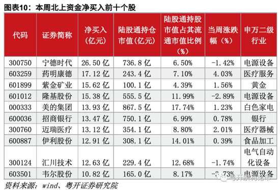 本周北上资金交易总额8342.16亿元,合计净买入279.27亿元,较前一周(179.97亿元)放量,其中沪股通净买入175.42亿元,深股通净买入103.85亿元,北上资金交易额占A股成交额比增长至10.72%(上周9.74%)。
