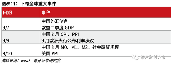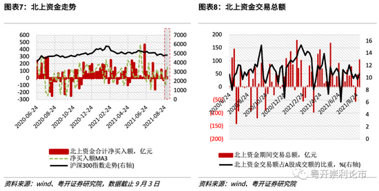 近期宏观流动性合理充裕,股市成交量维持高位,北上资金持续流入。宏观流动性方面,9月15日将有6000亿元MLF回笼,9月财政收支差额扩大有望部分抵消MLF到期规模较大、政府债券发行加速以及M0季节性增加等因素对流动性的抽水效应。股市流动性方面,两市日成交额维持万亿元,北向资金持续流入。