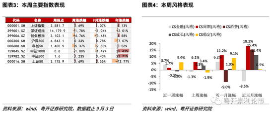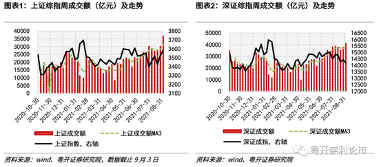 本周(2021/8/31-2021/9/3)市场表现沪强深弱。上证指数上涨1.69%,深证成指回调1.78%,创业板指回调4.76%。本周两市成交7.78万亿元,相比前一周大幅放量1.01万亿元。