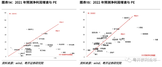 3、高景气度能够延续的成长板块。成长赛道的长期收益取决于产业趋势,中短期节奏受到流动性和市场情绪的影响。虽然近期成长板块略有回调,整体市场风格偏向均衡,但是在下半年流动性和政策有支撑的预期之下,我们认为业绩高增长且能持续的板块仍然值得布局。根据Wind一致预期,2021-2022年净利润增速高增长的板块包括电子、通信、汽车、电气设备、化工、有色等。