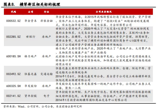 另据财联社最新梳理,横琴新区概念股还有这些: