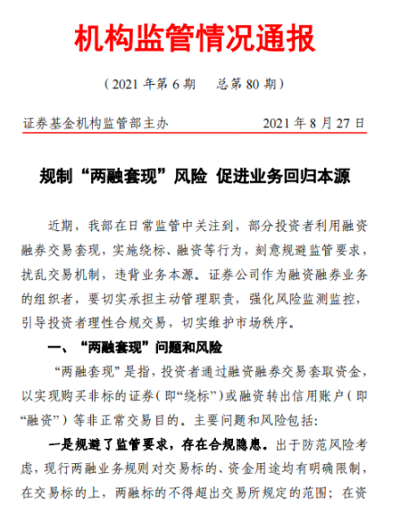 财联社记者获悉,不久前,有券商收到监管部门下发的《规制“两融套现”,风险促进业务回归本源》机构监管通报文件。