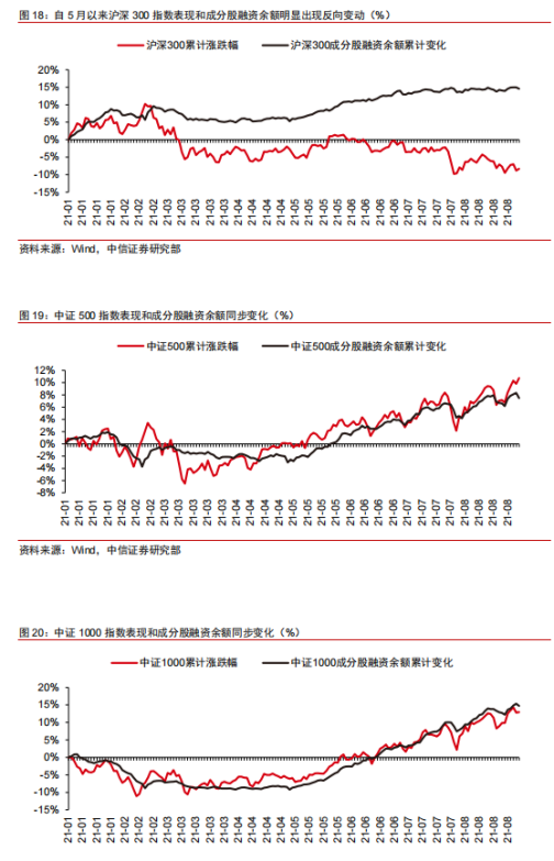 财联社(北京,记者 高云)讯,中信证券最新研究中发现,自今年5月至8月,代表中小市值的中证500和中证1000指数的表现和其成分股的融资余额的变化保持同向变动,例如中证500累计上涨约10%,融资余额同步增加10%,但同期代表大市值股票的沪深300指数累计下跌约6%,而融资余额增加了8%,这是2019年至今二者首次出现长达3个月的背离趋势。