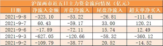今日沪深两市主力资金开盘净流出53.22亿元,尾盘净流出26.81亿元,两市全天资金净流出323.1亿元。