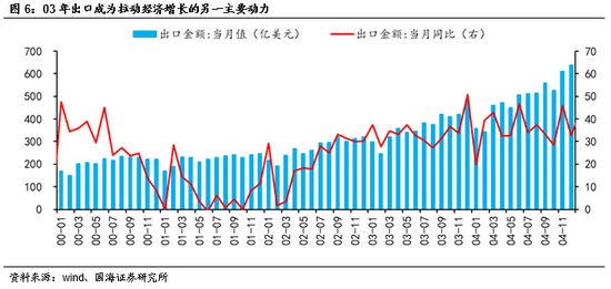 2003年经济重工业特点突出,投资、出口双重拉动下增速出现过热势头,通胀水平大幅抬升,逆周期的货币政策开始逐步收紧。自2001年底加入世界贸易组织成为其第143个成员后,出口高增拉动我国经济快速增长。2003年虽有伊拉克战争、非典疫情等国际国内不利因素扰动,但我国经济仍呈现出过热趋势。经济数据来看,GDP同比增速从02年Q4的9.1%增至03年底的10.0%,经济增长迈入两位数时代。工业增加值年内提升3.2个百分点至18.1%,其中,重工业增速03年底达19.0%,重工业特点突出。固定资产投资大幅上行11个百分点,同时出口增速从02年Q4的30.2%增至03年Q4的50.7%,成为经济增长的另一主要动力。这一时期,经济加速上升中出现了过快增长的问题,高增的投资数据使得我国电力、交通运输出现短缺,工业原材料价格持续攀升,PPI年内环比大幅提升3.6个百分点,CPI也强势上涨2.6个百分点,至03年底均位于3%以上的较高水平。政策方面,为抑制经济过热和人民币升值预期下的热钱涌入,逆周期的货币政策发生转向,央行通过发行票据加大货币回笼力度,并在9月将存款准备金率从6%提高至7%,货币政策转入从紧周期。