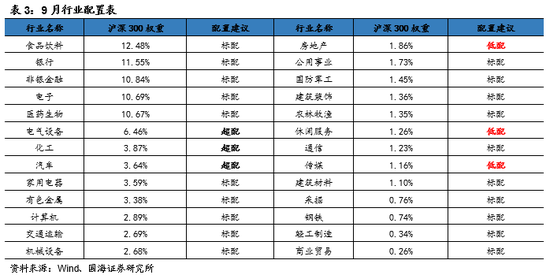 2.2 9月行业配置:首选化工、电气设备、汽车